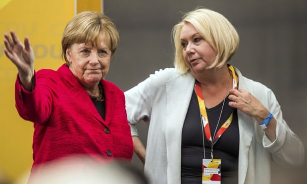 Bà Karin Strenz (bên phải) cùng Thủ tướng Đức Angela Merkel tại một sự kiện năm 2017. Ảnh: AP