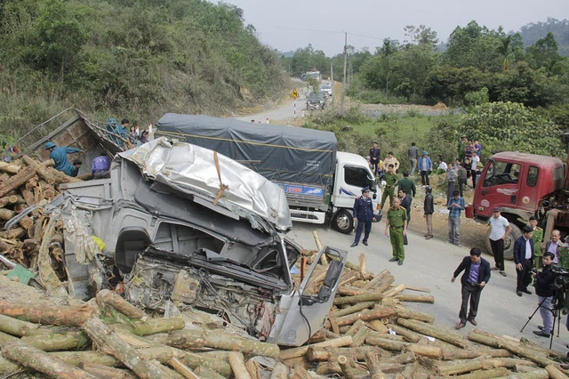 Toàn bộ cabin vỡ nát, gỗ keo, tràm văng tung tóe ra ngoài. Theo nhận định của người dân, có thể đêm tối, sương mù dày đặc, tài xế không quan sát kỹ nên mới xảy ra tai nạn.