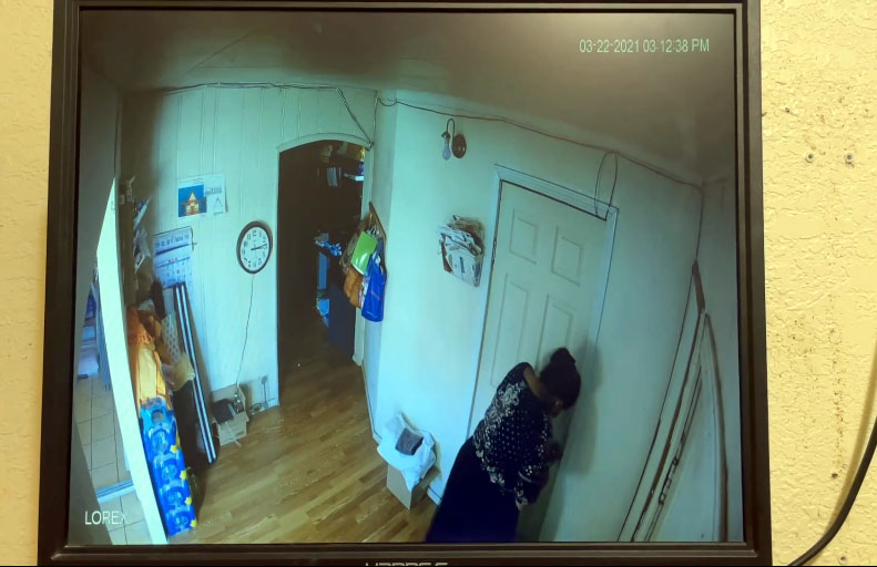 Một phụ nữ đang chạy cửa để vào phòng riêng tại chùa Tích Lan Dharma Vijaya Buddhist Vihara. (Facebook)