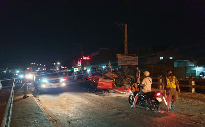 Old  Default Ô tô 4 chỗ văng trúng xe máy rồi lật chỏng vó trên đường, 1 người nguy kịch