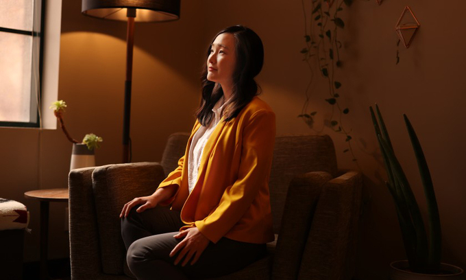 Nhà trị liệu tâm lý người Mỹ gốc Hàn Linda Yoon tại văn phòng của cô ở Los Angeles, bang California. Ảnh: LA Times.