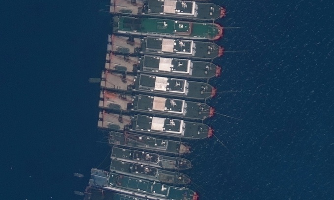 Tàu Trung Quốc thả neo tại đá Ba Đầu, được phát hiện qua ảnh chụp vệ tinh ngày 23/3. Ảnh: Reuters.