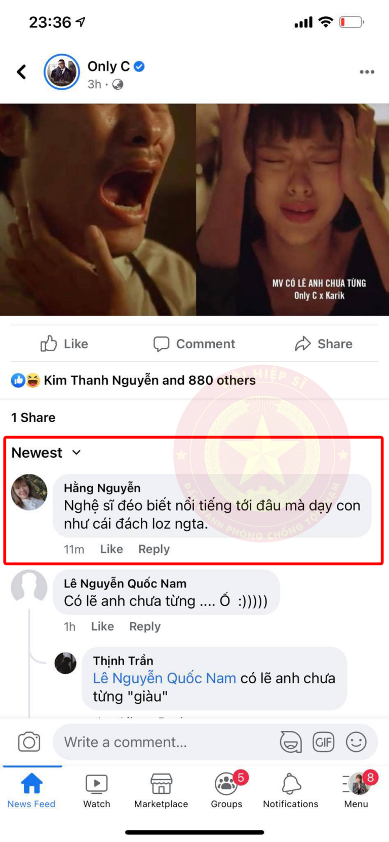 Nữ nhân viên bình luận vào bài đăng của Only C