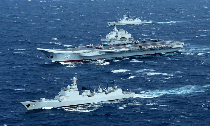 Nhóm tàu sân bay Liêu Ninh trong một chuyến huấn luyện năm 2020. Ảnh: Xinhua.