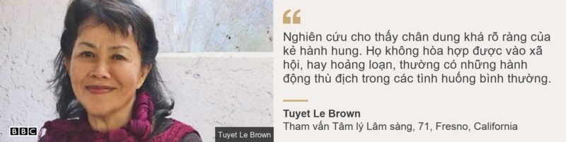 Tôi nghĩ nếu nghiên cứu về bệnh lý của những kẻ bắt nạt, nó cho thấy một hình ảnh khá rõ ràng về những kẻ hành hung "ghét người châu Á.'' Nghiên cứu cho thấy họ không hòa hợp được vào xã hội, dễ bị lo lắng và không hiểu cảm xúc của người khác. Họ hay hoảng loạn và hoang tưởng, hiểu sai ý định của người khác, thường có những hành động thù địch trong các tình huống bình thường.