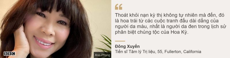 Điều này ảnh hưởng cuộc sống của bà ra sao?Tôi thấy xót xa và quặn lòng khi nghe tin những người phụ nữ gốc Á bị tàn sát tại Atlanta, Georgia. Tôi nghĩ đến mẹ mình, dì mình, những người quen biết và cả mình khi nhận ra nguy cơ có thể bị tấn công bất cứ lúc nào, một lời nói miệt thị, một ánh mắt nhìn căm ghét, hay một hành vi bạo lực của người có lòng kỳ thị. Hiện nay tôi không cảm thấy an toàn khi ra ngoài và luôn cẩn thận hơn. Sự bất an này có thể là một căng thẳng âm ỉ kéo dài cho nhiều người Á Châu trong lúc này.