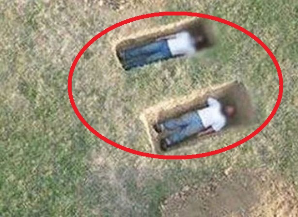 Bức ảnh do Google Maps chụp cho thấy cảnh 2 người đàn ông nằm trong 2 ngôi mộ chưa lấp đất. Ảnh: Google Maps