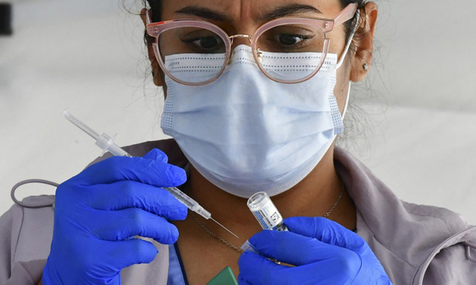 Nhân viên y tế chuẩn bị liều tiêm vaccine Covid-19 của Johnson & Johnson tại buổi giới thiệu vaccine ở Los Angeles, bang California, Mỹ tháng trước. Ảnh: AFP.