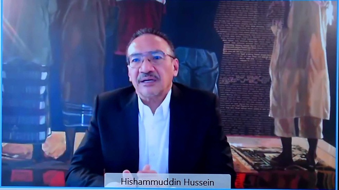 Ngoại trưởng Malaysia Hishammuddin Hussein trong cuộc trao đổi trực tuyến với Bộ trưởng Bùi Thanh Sơn. Ảnh: Bộ Ngoại giao.