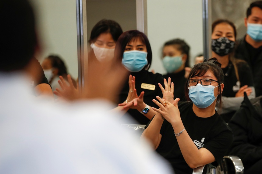 Đại dịch Covid-19 đã thúc đẩy Nguyen thành lập tổ chức "Nailing It for America". Tổ chức này nhận các khoản quyên góp và phân phối các thiết bị phòng vệ cá nhân nhân viên y tế, với giá trị thiết bị khoảng 30 triệu USD. Ngoài ra, tổ chức còn cung cấp thực phẩm cho người già bị cô lập bởi đại dịch. Khi vụ nổ súng xảy ra, mục tiêu của tổ chức đã thay đổi, tập trung giúp đỡ cộng đồng gốc Á cũng như đồng nghiệp trong ngành làm đẹp. Ảnh: Reuters.