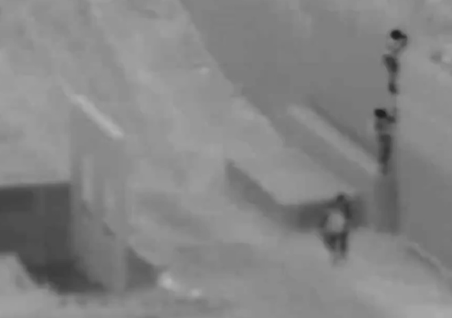 Hệ thống camera giám sát dọc theo bức tường biên giới giữa Mỹ và Mexico đã ghi lại cảnh vượt biên đầy nguy hiểm.