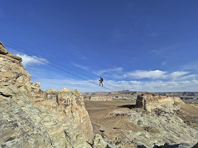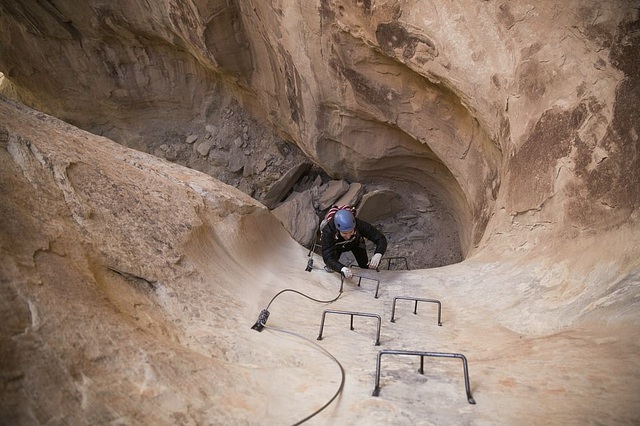 Nằm chênh vênh giữa sa mạc 160 triệu năm tuổi ở Utah, cây cầu thang dây tổng có 120 bậc thang dài 60 mét và cao so với mặt đất 122 mét.