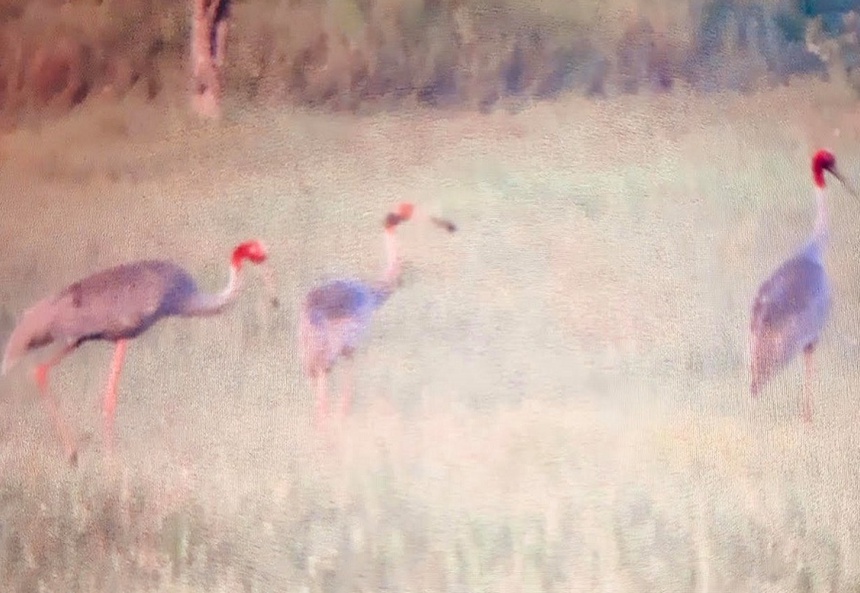 3 cá thể sếu đầu đỏ được ghi nhận tại khu A4 vào chiều 16/4. Ảnh: Đỗ Minh Chánh.
