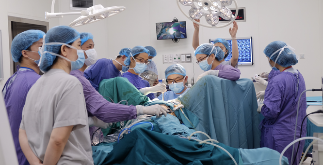 BS. Minh cùng ê kíp phẫu thuật cho bệnh nhân L. (Ảnh - BS. Nguyễn Đình Minh)