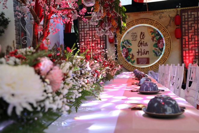 Tiệc sinh nhật Gia Hân diễn ra ở khu vực bên ngoài căn biệt thự của gia đình Thúy Hạnh. Theo người mẫu 43 tuổi, ông xã Minh Khang là người lên ý tưởng, tự tay thiết kế sân khấu, không gian cho buổi tiệc.