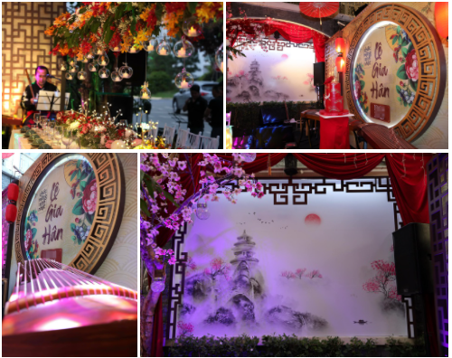 Trên sân khấu, Thúy Hạnh - Minh Khang đặt tứ tấu gồm hai đàn cổ tranh, một cây sáo, một đàn nhị để các nhạc công chơi trong suốt bữa tiệc. Các nhạc phẩm được thể hiện đều thuộc phong cách cổ trang như Lạnh lẽo, Đại ngư, Tay trái chỉ trăng, Ái thương, Tam thốn thiên đường...