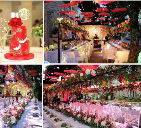 Không gian bữa tiệc lấy màu trắng, đỏ làm chủ đạo, được đính nhiều hoa tươi. Gia đình Thúy Hạnh dành nhiều ngày để chuẩn bị cho tiệc sinh nhật lần thứ 14 của Gia Hân.
