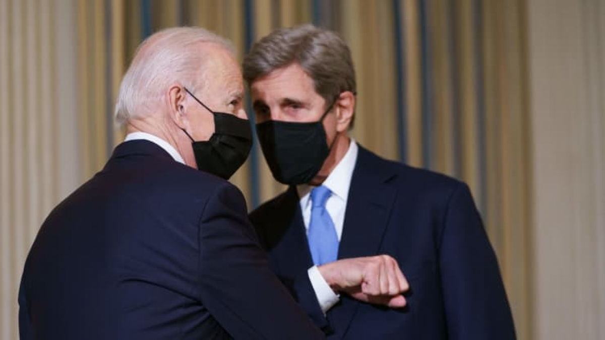 Tổng thống Mỹ Joe Biden và Đặc phái viên về khí hậu John Kerry tại Nhà Trắng ngày 27/1/2021. Ảnh: Getty
