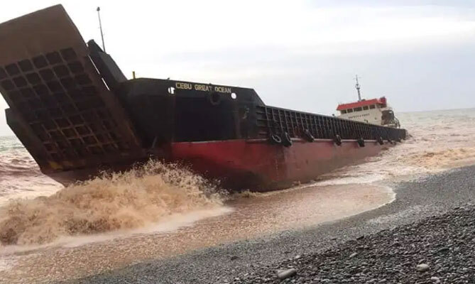 Tàu Cebu Great Ocean chở theo 2.000 lít dầu diesel và số lượng lớn quặng niken, bị mắc cạn từ hôm 19/4 bên bờ biển thị trấn Malimono trên đảo Mindanao, phía nam Philippines, khi tìm nơi tránh bão Surigae. 20 thành viên thủy thủ đoàn phải bỏ tàu, xuống xuồng cứu sinh rời đi do biển động dữ dội khi cơn bão đổ bộ.