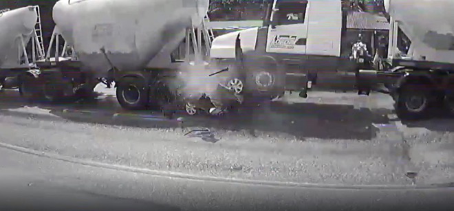 Đoạn video do camera an ninh ghi lại, cho thấy cảnh chiếc xe chở gia đình di chuyển phía sau một xe tải. Đột nhiên, chiếc xe tải thứ hai lao tới với tốc độ cao đâm thẳng vào chiếc xe chở gia đình.