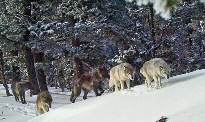 Một bầy sói được phát hiện đang săn mồi ở khu vực giữa Oregon và Idaho. Ảnh: Oregon Department of Fish and Wildlife.