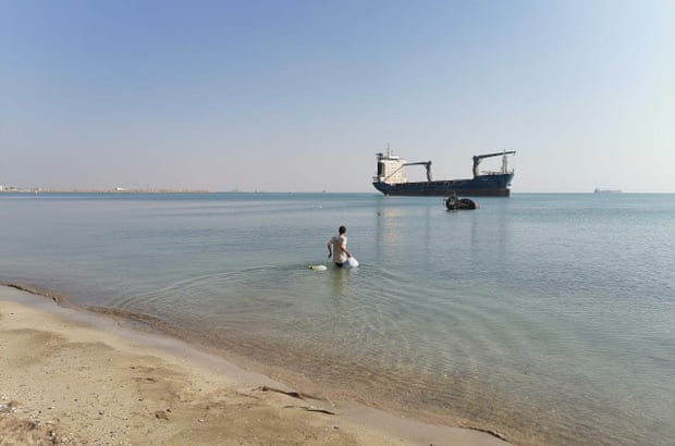 Tàu MV Aman ban đầu neo cách bờ 8km, nhưng bị bão cuốn bay mỏ neo, đẩy con tàu trôi về gần bờ, chỉ cách 100 mét. Cứ cách vài ngày, Mohammed lại bơi vào bờ để mua thực phẩm và sạc điện thoại.
