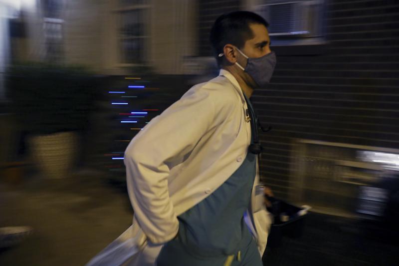Khan vừa lái xe vừa gọi điện liên hệ với bệnh nhân sắp đến. Ảnh: AP