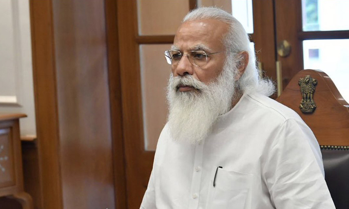 Thủ tướng Ấn Độ Narendra Modi trong cuộc họp về Covid-19 tại New Delhi đầu tháng này. Ảnh: ANI.