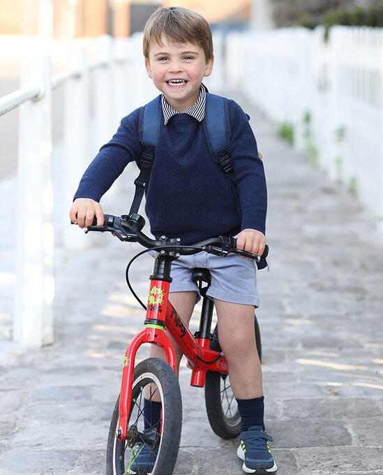 Để kỷ niệm Hoàng tử Louis tròn 3 tuổi hôm 23/4, nhà Cambridge đã chia sẻ bức ảnh cậu bé vào ngày đầu tiên đi nhà trẻ do chính Kate chụp. Trong ảnh, Louis ngồi trên chiếc xe thăng bằng trong khuôn viên Điện Kensington, vai đeo balô, cười tươi hớn hở.