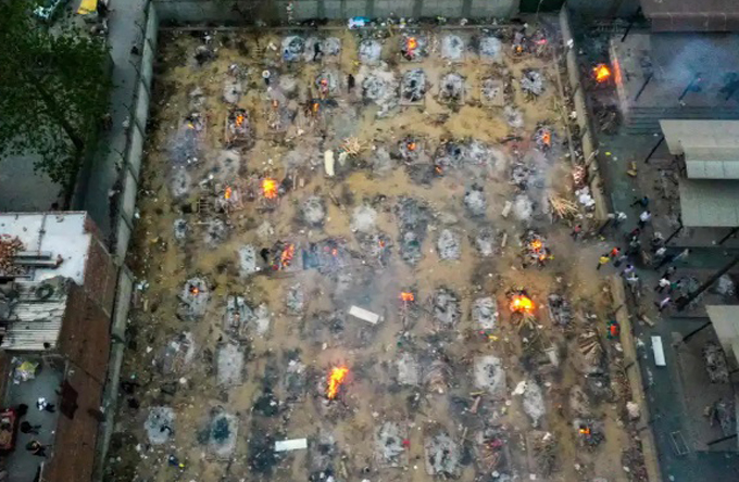 Trước tình dịch bệnh đang lây lan chóng mặt, cảnh tượng đau lòng trên không còn quá xa lạ. Thi thể các nạn nhân Covid được hỏa táng xuyên đêm, trái với phong tục của người Hindu quy định không được thiêu xác sau khi mặt trời lặn, để đối phó với công việc đang tồn đọng.