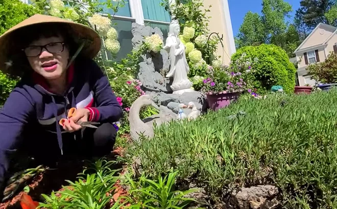 Nhờ đó, Phương Hồng Thủy có được một khu vườn nở rộ các loại hoa đẹp bên căn nhà sang trọng. Trong vườn hoa nhà mình, Phương Hồng Thủy còn đặt một bức tượng Phật nhỏ để tu tâm.