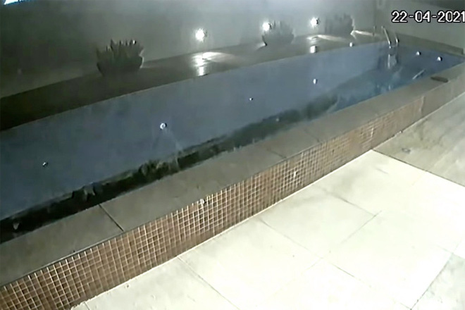Trang Metro ngày 29-4 đưa tin đoạn clip gây sốc do camera an ninh quay lại cho thấy đáy của bể bơi dài gần 23 m bất ngờ đổ sụp xuống hầm để xe bên dưới, làm khu vực này ngập đầy nước và mảnh kính vỡ. May mắn là không có ai bị thương trong vụ việc xảy ra tại Vila Velha, bang Espirito Santo hôm 22-4.