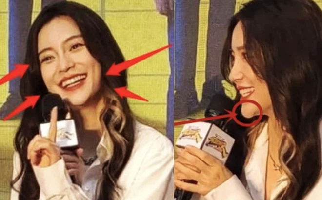 Lật lại bức ảnh do studio chia sẻ trước đó, nhan sắc trước và sau khi chỉnh ảnh của bà xă Huỳnh Hiểu Minh như "một trời một vực". Khi có photoshop, nữ diễn viên khoe khéo visual trong sáng, thanh tú, vậy nhưng tại sự kiện, Baby không giấu nổi khuyết điểm nhan sắc.