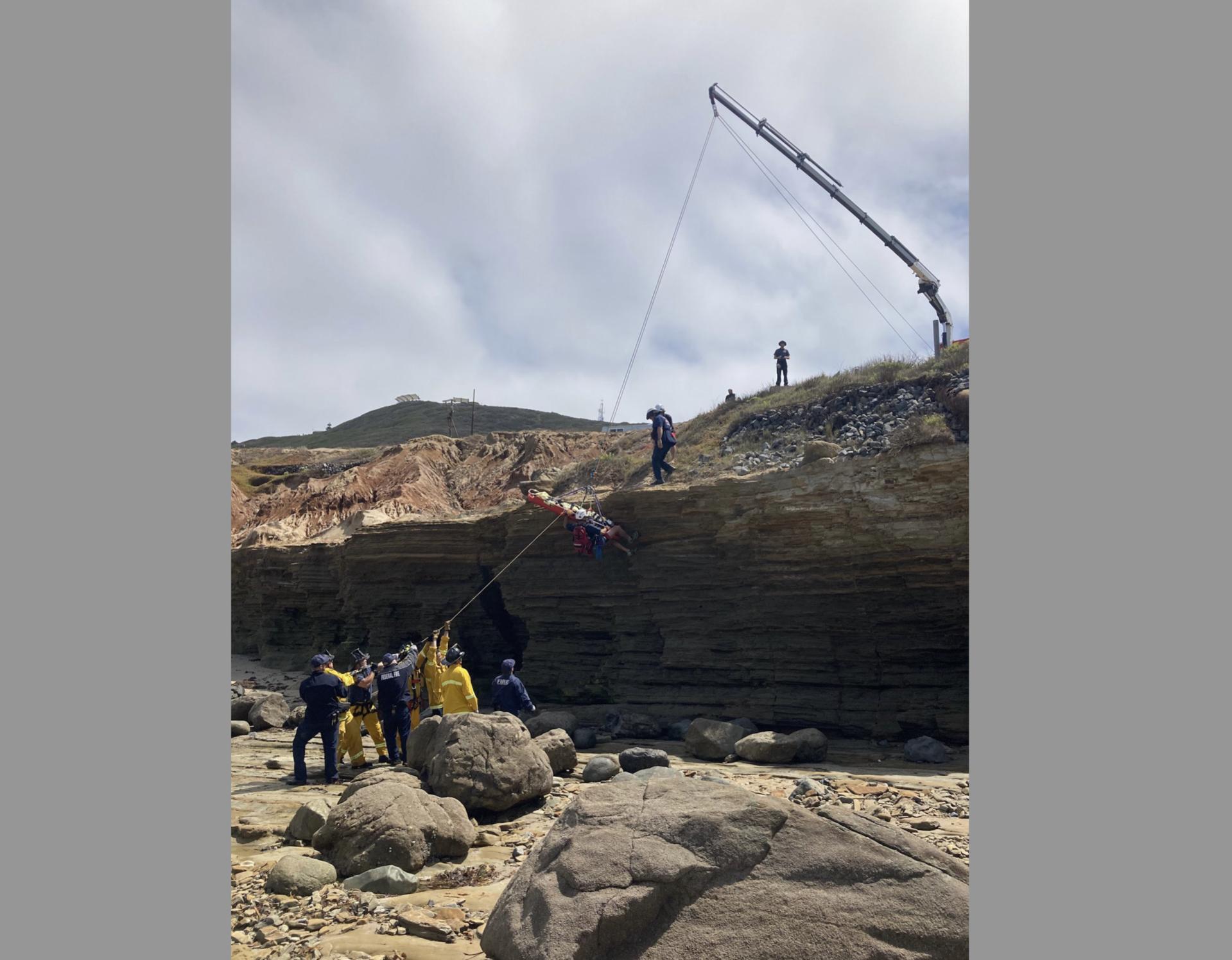 Nhân viên cấp cứu chuyển xác nạn nhân khỏi bãi đá. (Hình minh hoạ: SDFD)