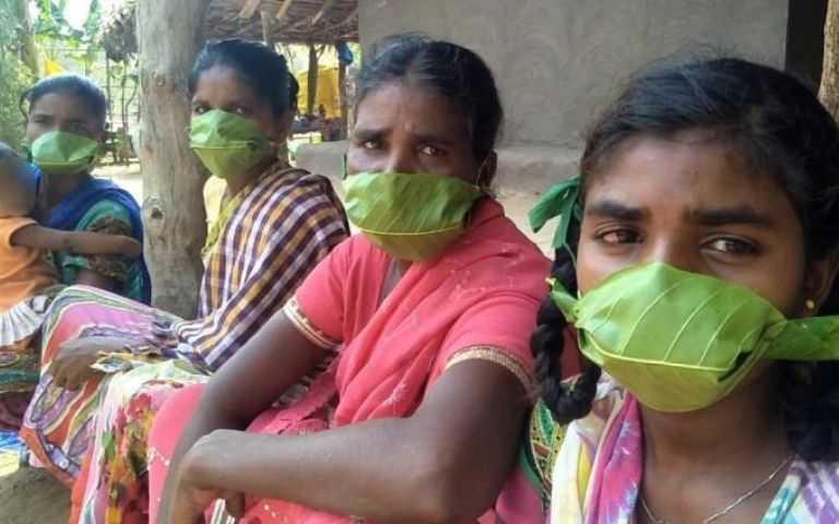 Người Ấn Độ thiếu vật liệu y tế, phải dùng lá thay thế cho khẩu trang.