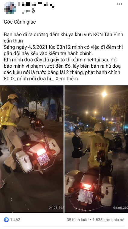 Theo anh Trường, ngày 4-5, anh bị CSGT Đội Tân Sơn Nhất lập biên bản lỗi vượt đèn đỏ, nhưng thời điểm trên anh Trường nói mình không có lỗi, không chấp nhận ký vào biên bản xử phạt và yêu cầu CSGT đưa chứng cứ chứng minh hành vi phạm lỗi của anh.