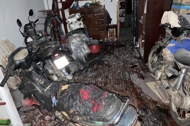 Hậu quả của vụ cháy khiến 3 xe máy trong nhà bị thiêu rụi hư hỏng nặng. Riêng Hiền bị bỏng ở bàn tay phải và hai chân.