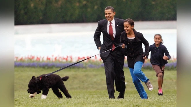Bo, thuộc giống chó lội nước Bồ Đào Nha, là một món quà mà cố Thượng nghị sĩ Ted Kennedy và vợ Victoria Kennedy dành tặng Sasha và Malia vào năm 2009.