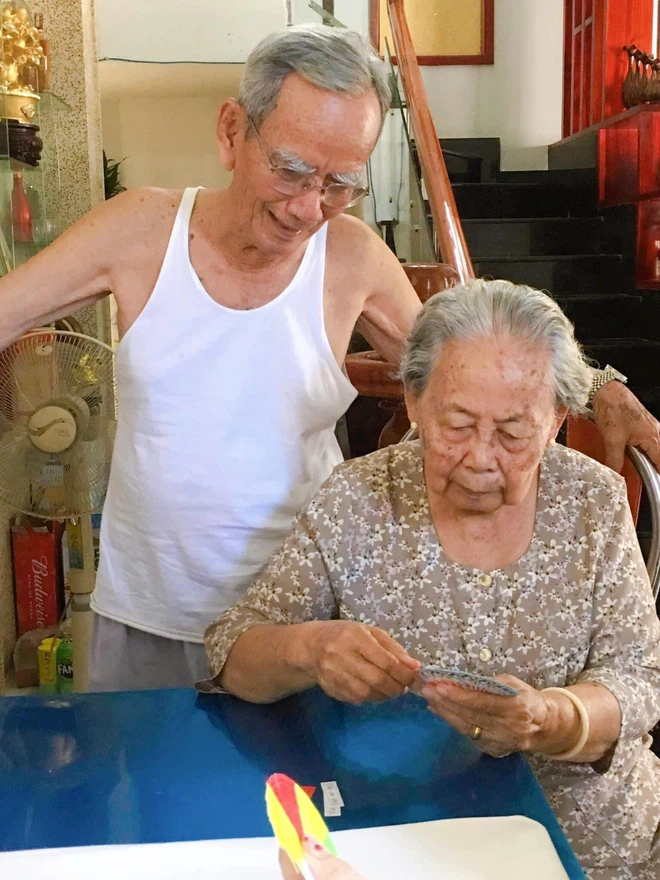 Ông bà lúc nào cũng ở gần nhau, không rời nửa bước. Hồi trẻ để có tiền nuôi 9 người con, ông bà buôn bán ngược xuôi vất vả lắm, lại còn chiến tranh nữa nên cực khổ.
