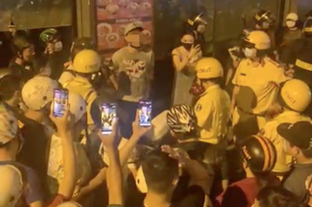 Sau đó, nam tài xế nói "CSGT bị mù" và có lời nói văng tục thì bị lực lượng chức năng khống chế.Còn ở một clip khác dài hơn 60 phút, hàng trăm người dân bất chấp dịch bệnh Covid-19 đang diễn biến phức tạp, tập trung đông nghẹt dưới lòng đường để theo dõi sự việc. Nhiều người dân dùng điện thoại quay phim, hò hét, yêu cầu lực lượng chức năng tháo còng để tài xế đi về, khiến CSGT phải nhiều lần giải tán.
