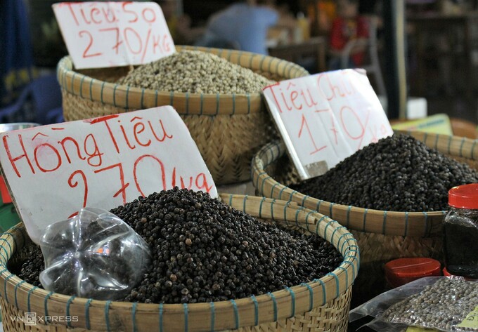 Phú Quốc còn được mệnh danh là 'Vương quốc hồ tiêu'. Hai loại tiêu hiện được trồng nhiều trên đảo là tiêu giống Hà Tiên và Phú Quốc, hạt mẩy, tròn và cay nồng, thơm. Tiêu thường được nêm nếm cho át bớt mùi tanh của hải sản, tuy nhiên vẫn giữ vị tươi ngọt cho món ăn. Chợ đêm Phú Quốc hiện có 3 loại tiêu chính là hồng tiêu, tiêu đen và tiêu sọ giá từ 170.000 đồng đến 270.000 đồng mỗi kg.