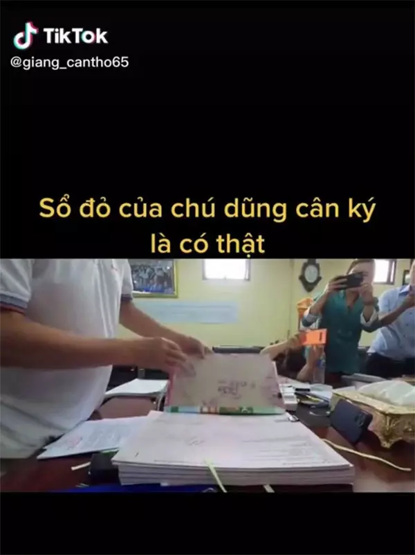 Clip ghi lại cảnh bàn làm việc của ông Dũng có 2 tập sổ đỏ, một tập 127 sổ, một tập 255 sổ. Nhìn 2 tập sổ đỏ dày cộp, nếu mang đi cân thì chỗ giấy này cũng khá nặng chứ không ít ỏi gì.