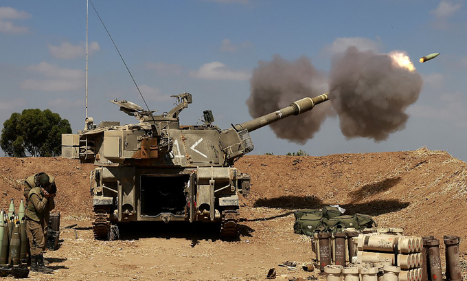 Lựu pháo tự hành M109 của Israel nã đạn vào Dải Gaza ngày 13/5. Ảnh: AFP.
