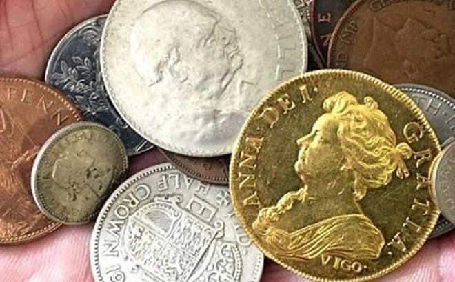 Không thể tin được, đây chính là đồng xu hiếm nhất nước Anh. 2 mặt của đồng xu đều có được in hình đặc biệt gồm hình Nữ hoàng Anne Vigo ra đời vào năm 1702.