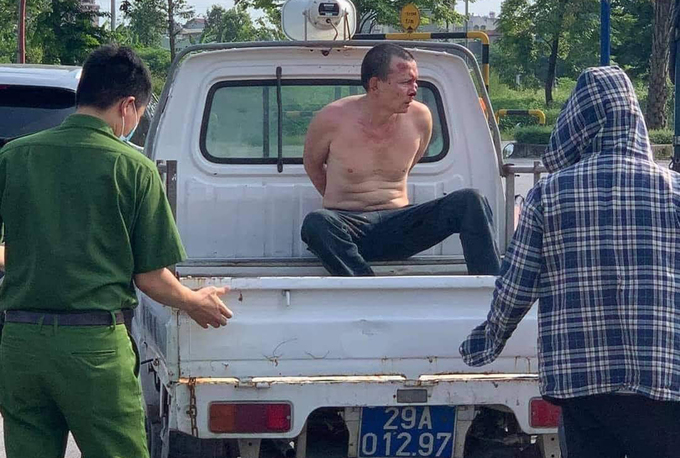 Sáu bị nạn nhân cùng người dân khống chế tại chỗ, giao công an xử lý. Nghi phạm mặt dính đầy máu, cởi trần. Tài xế taxi đang cấp cứu tại bệnh viện với nhiều vết dao đâm.