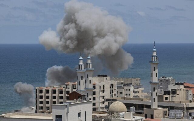 Khói bốc lên ở khu vực cảng ở thành phố Gaza sau vụ tấn công của Israel từ Địa Trung Hải ngày 17/5 (Ảnh: AFP).