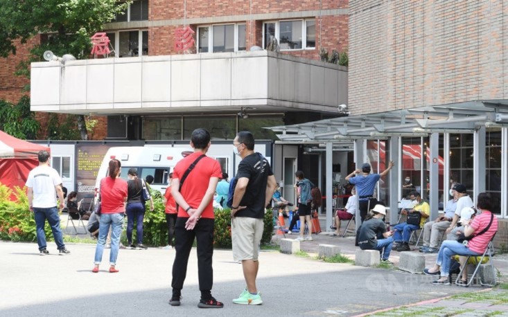Người dân chờ đợi ở bên ngoài chi nhánh Bệnh viện thành phố Đài Bắc, thuộc quận Wanhua, thành phố Đài Bắc, Đài Loan, để được lấy mẫu xét nghiệm hôm 15/5. Ảnh: CNA