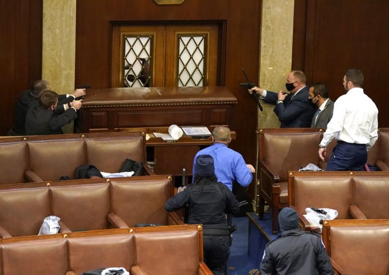 Một trong số họ, một phụ nữ không có vũ khí, đã bị cảnh sát bắn chết khi cố gắng đột nhập vào Hạ viện.