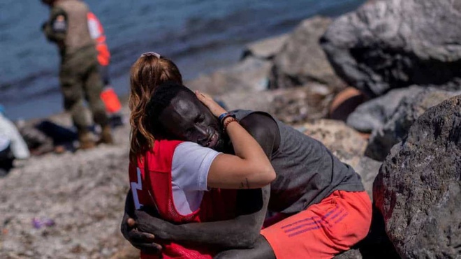 Bức ảnh làm bùng nổ cuộc chiến trên mạng xã hội. Đó là bức ảnh tình nguyện viên Chữ Thập đỏ ôm người đàn ông nhập cư Senegal vào khoảnh khắc anh đặt chân lên vùng Ceuta, lãnh thổ thuộc Tây Ban Nha.