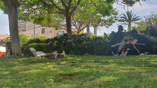 Người dân ở Ashkelon trú ẩn khi tiếng còi báo động tên lửa rền vang (Nguồn: Ynet).